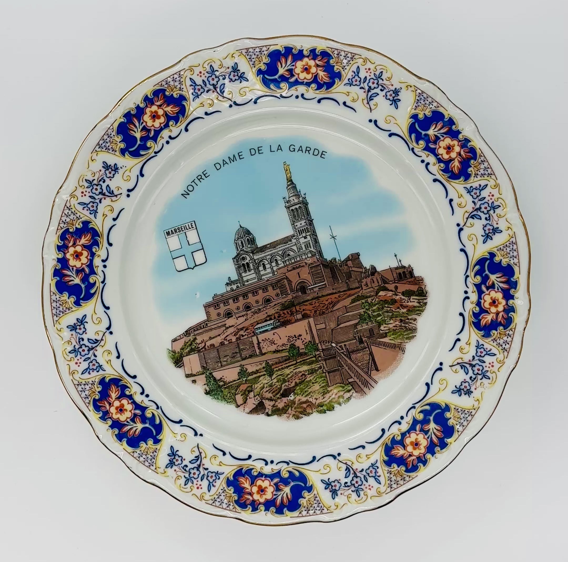 Assiette en porcelaine allemande – Notre-Dame de la Garde, décor illustré et dorure